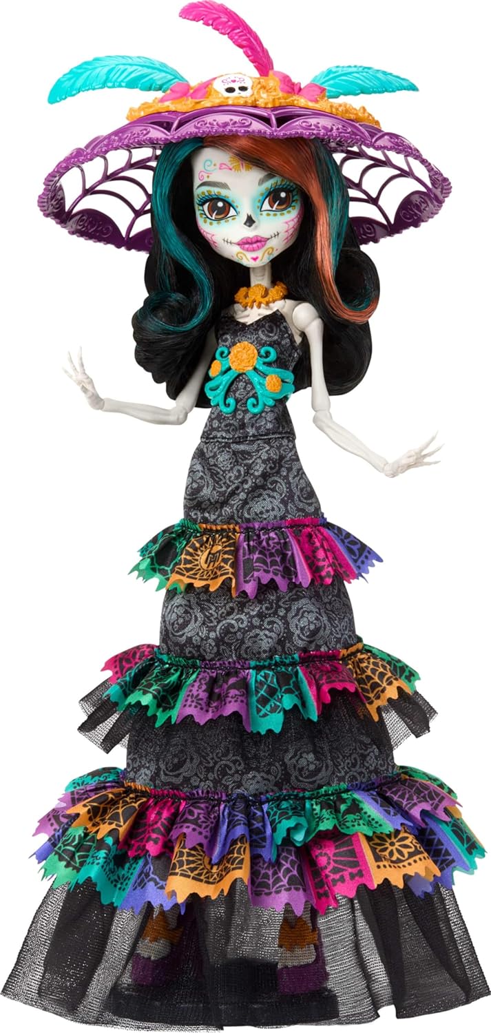 Świętuj Día de Muertos z kolekcjonerską lalką Skelita Calaveras w uroczej świątecznej sukience.