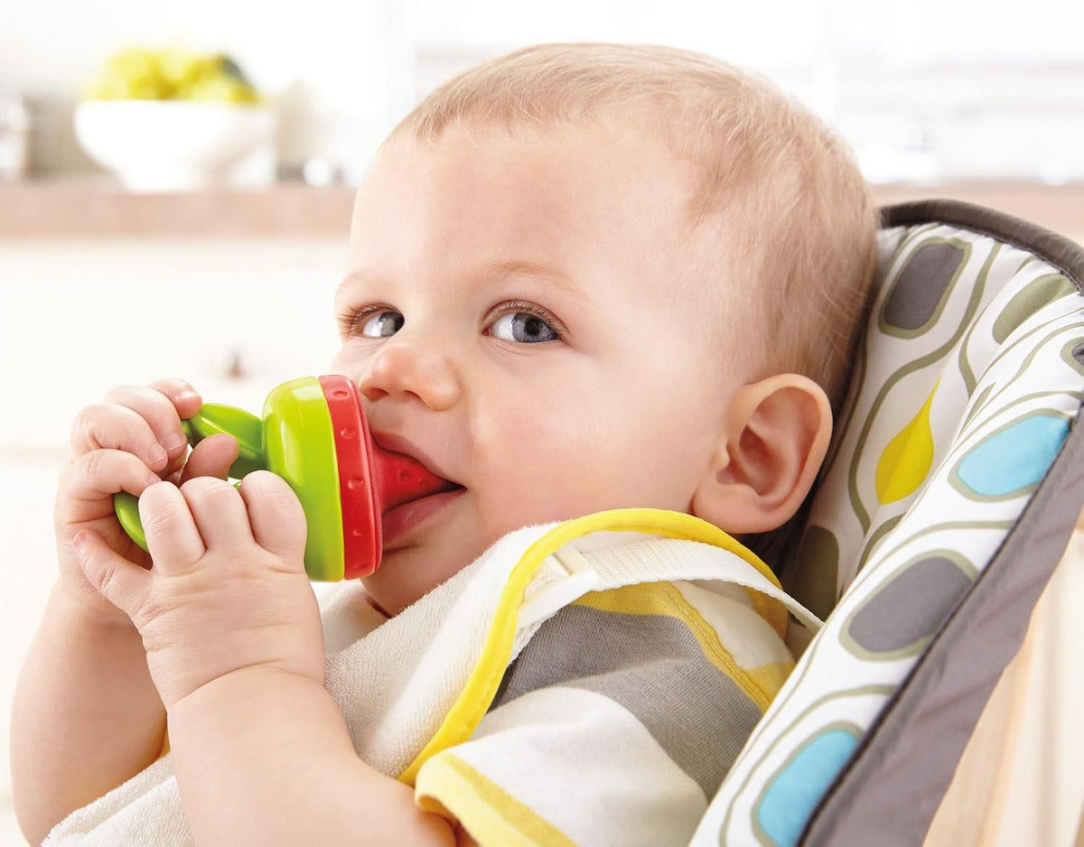 Cena za jednostkę ZaNowa linia produktów do karmienia marki Fisher Price z jakością, której możesz zaufać! W nowej linii do karmienia marki Fisher Price dostępne są produkty takie jak: miseczki z zestawem sztućców, łyżeczki i widelce w dwóch modelach oraz kubki niekapki dla dzieci od 6 miesięcy i dla starszych powyżej 12 miesięcy. Linia wyróżnia się najwyższą jakością użytych materiałów oraz ergonomicznymi rozwiązaniami i designem, które umożliwiają dziecku naukę samodzielnego jedzenia. Fisher Price Gryzak Zimny Słodki Lizak na ząbkowanie 6m+ Y9842 Unikalny gryzak w kształcie słodyczy pomoże mamie i maluszkowi w okresie ząbkowania. Maluszek może go również używać jako smacznej przekąski w ciągu dnia. Możliwość zamrożenia ulubionego soku lub jedzenia w przegródkach przeznaczonych do tego celu. Zamrożony wkład wystarczy umieścić w słodyczy i podać dziecku. Maluszek chętnie będzie go ssał, jednocześnie pomagając złagodzić ból dziąseł podczas wyrzynania się zębów. Łatwy do czyszczenia, estetyczny i trwały. Wykonany z bezpiecznych materiałów. Zalety: Miękka, silikonowa powierzchnia gryzaka łagodzi ból dziąseł, bezpieczny dla maluszka, trwały i łatwy do czyszczenia, tacka z przegródkami umożliwia zamrożenie 8 wkładów do słodyczy z soków, wody lub ulubionego jedzenia, na górze tacki miejsce do przechowywania gryzaka, łatwy do przechowywania. Wiek dziecka: od 6 miesięcy.