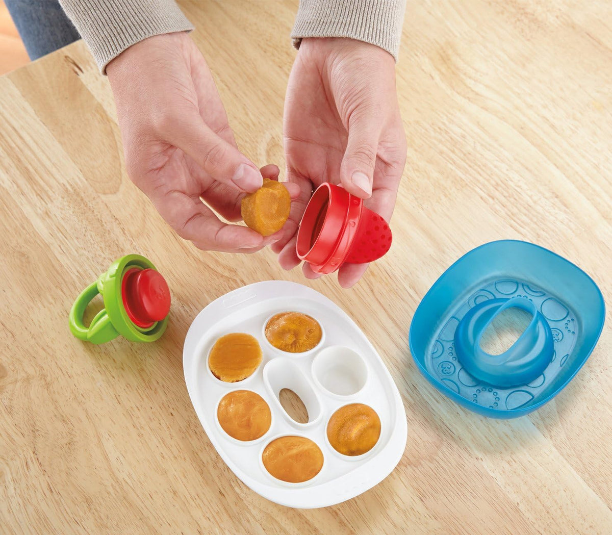 Nowa linia produktów do karmienia marki Fisher Price z jakością, której możesz zaufać! W nowej linii do karmienia marki Fisher Price dostępne są produkty takie jak: miseczki z zestawem sztućców, łyżeczki i widelce w dwóch modelach oraz kubki niekapki dla dzieci od 6 miesięcy i dla starszych powyżej 12 miesięcy. Linia wyróżnia się najwyższą jakością użytych materiałów oraz ergonomicznymi rozwiązaniami i designem, które umożliwiają dziecku naukę samodzielnego jedzenia. Fisher Price Gryzak Zimny Słodki Lizak na ząbkowanie 6m+ Y9842 Unikalny gryzak w kształcie słodyczy pomoże mamie i maluszkowi w okresie ząbkowania. Maluszek może go również używać jako smacznej przekąski w ciągu dnia. Możliwość zamrożenia ulubionego soku lub jedzenia w przegródkach przeznaczonych do tego celu. Zamrożony wkład wystarczy umieścić w słodyczy i podać dziecku. Maluszek chętnie będzie go ssał, jednocześnie pomagając złagodzić ból dziąseł podczas wyrzynania się zębów. Łatwy do czyszczenia, estetyczny i trwały. Wykonany z bezpiecznych materiałów. Zalety: Miękka, silikonowa powierzchnia gryzaka łagodzi ból dziąseł, bezpieczny dla maluszka, trwały i łatwy do czyszczenia, tacka z przegródkami umożliwia zamrożenie 8 wkładów do słodyczy z soków, wody lub ulubionego jedzenia, na górze tacki miejsce do przechowywania gryzaka, łatwy do przechowywania. Wiek dziecka: od 6 miesięcy.