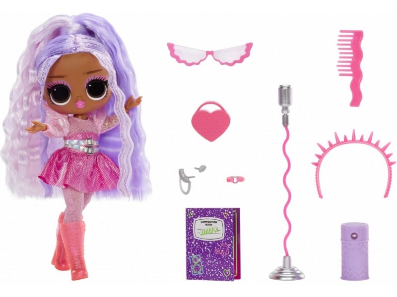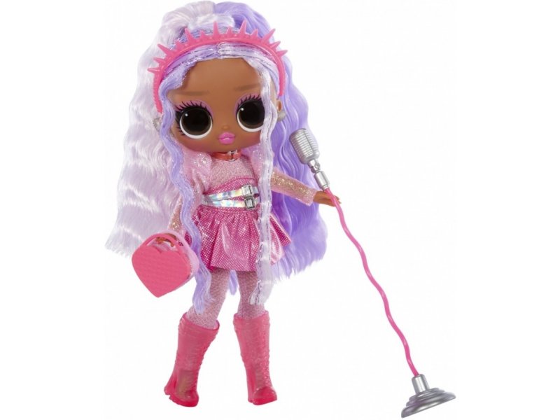 Odkryj wszystkie jej niesamowite dodatki, takie jak gorące różowe kozaki do kolan, unikalne srebrne kolczyki, torebka w kształcie serca, zabójcze okulary przeciwsłoneczne chroniące przed paparazzi, neonowo różona korona-opaska do włosów, modny łańcuszek, grzebień, lampa UV oraz najfajniejszy retro mikrofon, dzięki któremu może trafić w każdy wysoki ton!