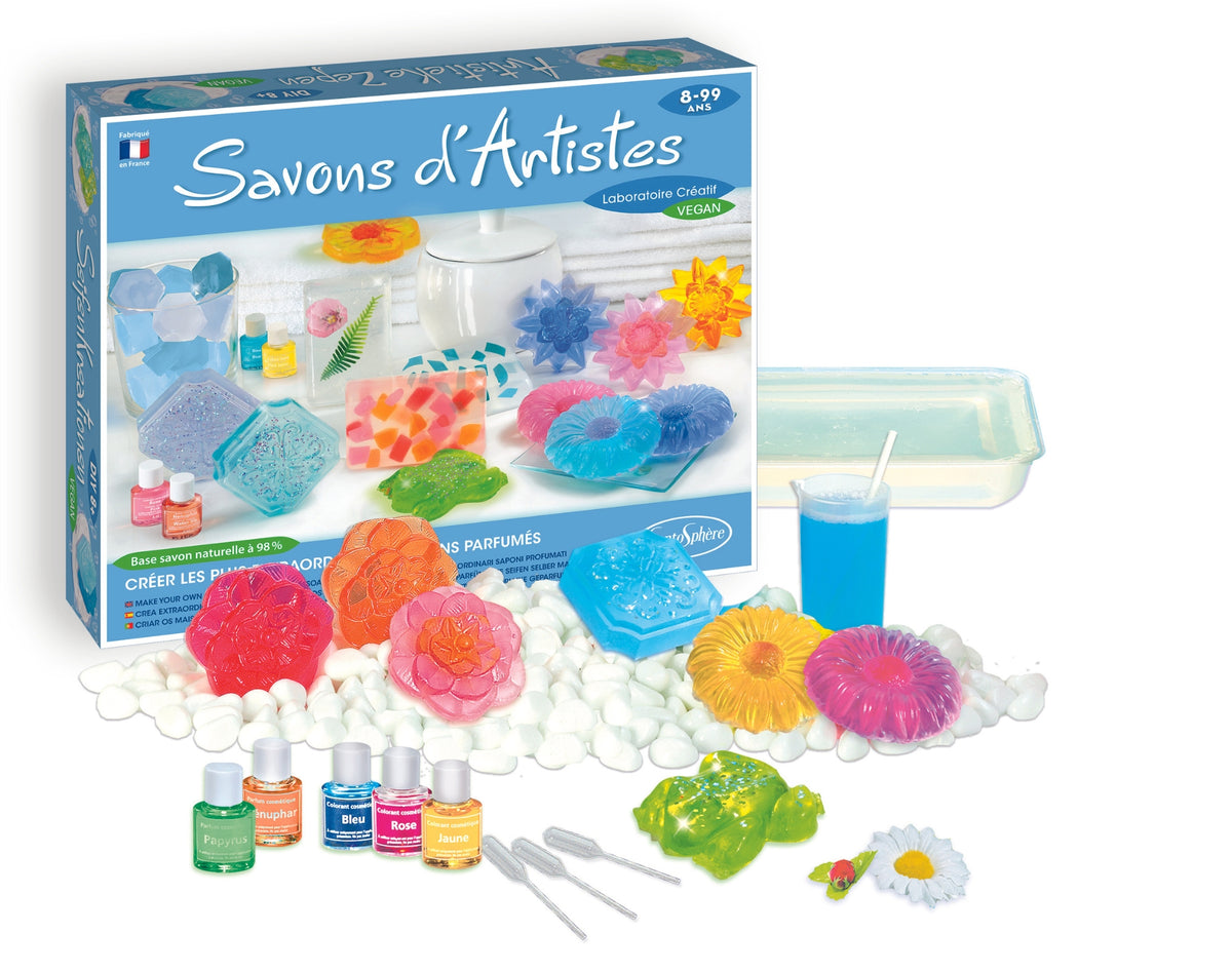 Pozwól, aby Twoja wyobraźnia unosiła się, podczas gdy tworzysz wyjątkowe mydła z wielobarwnymi wkładkami. Styl może być nowoczesny, romantyczny lub magiczny z błyszczącymi brokatami, dokądkolwiek prowadzi inspiracja artysty. Idealne do recyklingu starych kawałków mydła. Dostępne są zestawy zamienne. Odpowiednie dla wegan: Nie zawiera produktów pochodzenia zwierzęcego.
