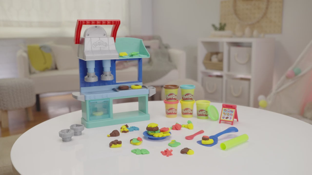 5 SZTUK PLAY-DOH: Ten zestaw do tworzenia jedzenia na stole zawiera 2-uncjowe pojemniki z masą Play-Doh w kolorach czerwonym, żółtym, zielonym, niebieskim i brązowym. Zawiera pszenicę.