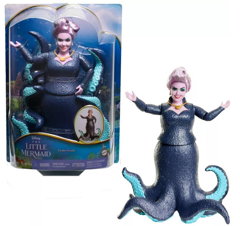 Poznaj potężną złoczyńcę z Małej Syrenki Disneya! Lalka Ursula jest ruchoma i przedstawiona ze swoimi charakterystycznymi mackami z błyszczącymi detalami oraz ma swoją lawendową fryzurę do zabawy w stylizację. Fani mogą kolekcjonować wszystkie lalki z Małej Syrenki i tworzyć własne przygody nad lub pod falami! Każda lalka sprzedawana jest osobno, w zależności od dostępności. Kolory i ozdoby mogą się różnić.
