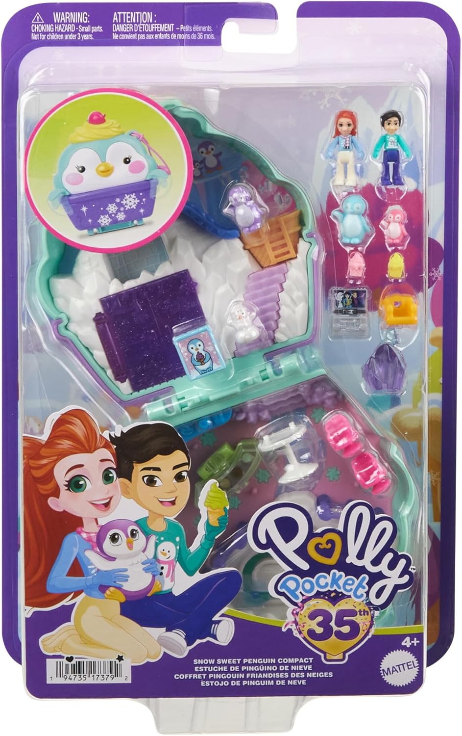 Cena za jednostkę ZaTa Polly Pocket Snow Sweet Penguin Compact zawiera dwie mikro laleczki, 13 akcesoriów i 6 funkcji do opowiadania historii, zapewniając najlepszą zimową przygodę!