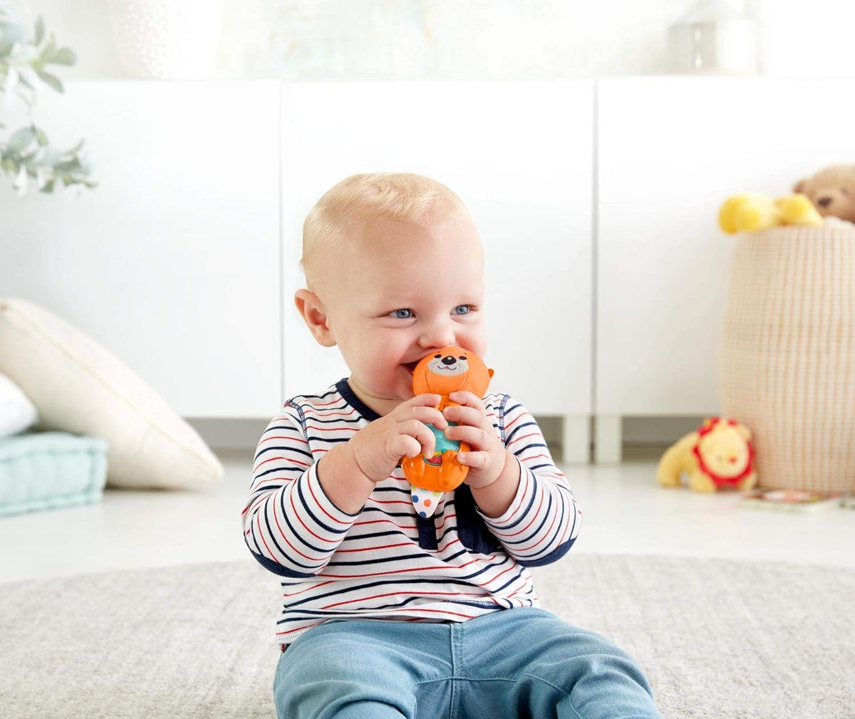 Baw się dobrze, grając z Fisher-Price® Hungry Otter Rattle.Ta urocza zabawka ma miękką główkę i ogon oraz kolorowe "rybki" w przezroczystym brzuszku. Gdy Twój maluszek chwyci i potrząśnie swoim jeżowym przyjacielem, zobaczy, jak rybki poruszają się w środku!