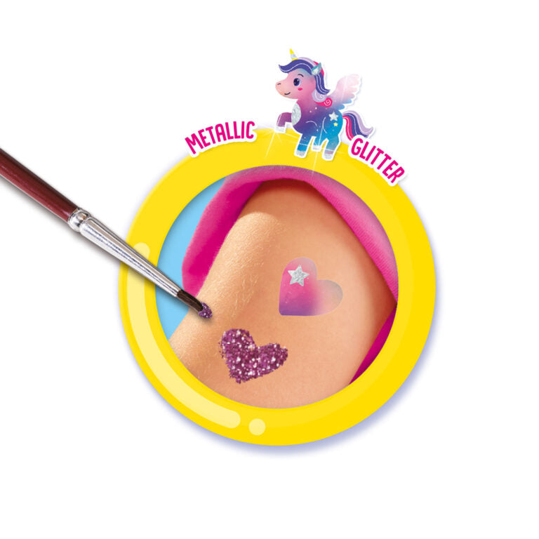 Odkryj magię jednorożców z tym wspaniałym zestawem, który zawiera wszystko, czego potrzebujesz do tworzenia unikalnych metalicznych tatuaży!