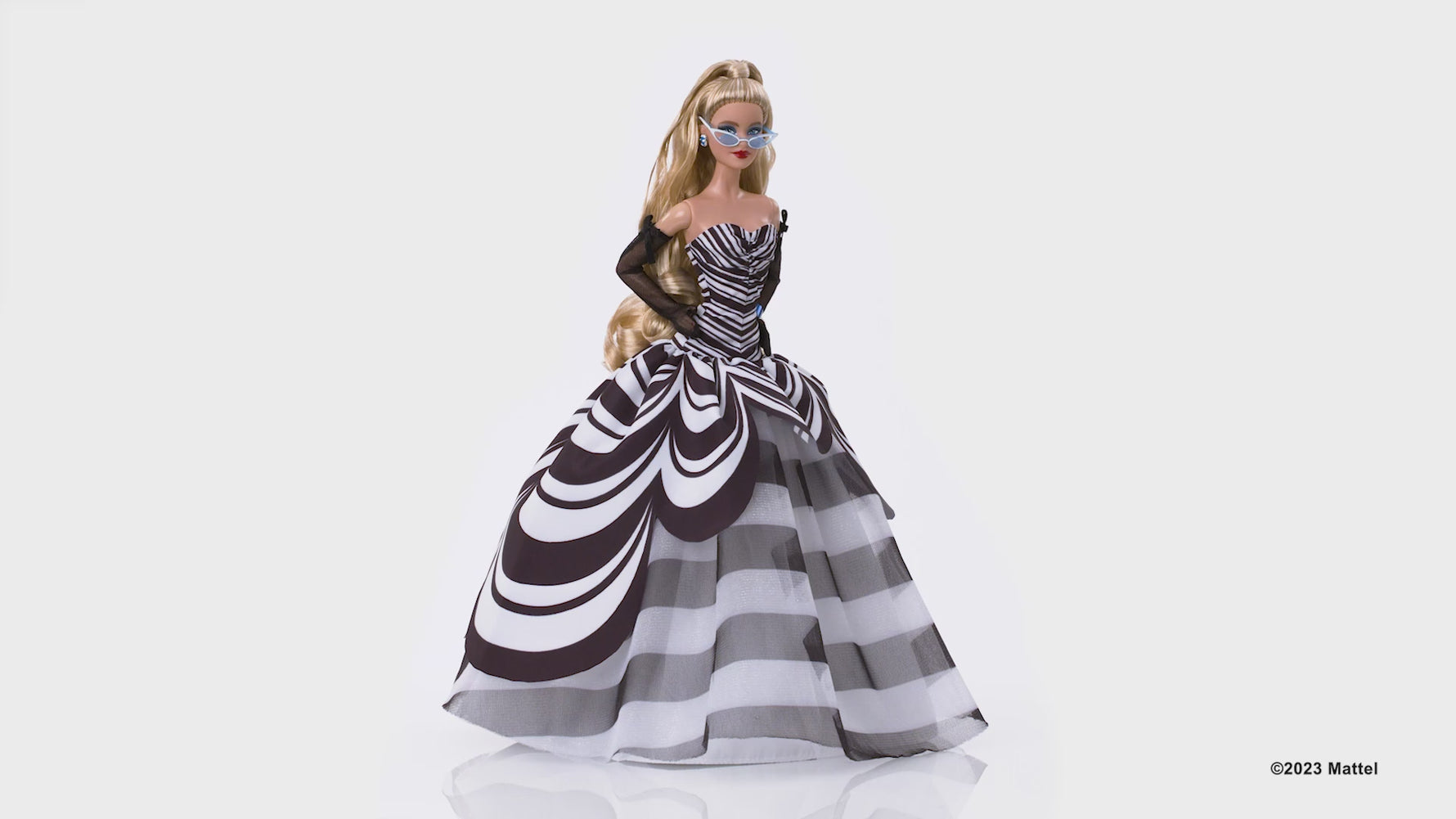 Ta glamourowa lalka Barbie upamiętnia 65. rocznicę Barbie w oszałamiającej modzie. Na cześć jej dziedzictwa, jej pamiątkowy wygląd jest przepełniony pięknymi detalami od stóp do głów, które oddają hołd oryginalnej lalce Barbie. Wizja w czerni i bieli z odcieniami szafiru to niezbędny element dla kolekcjonerów, miłośników Barbie i entuzjastów mody na całym świecie. Zawiera stojak na lalkę oraz certyfikat autentyczności. Lalka Barbie® nie stoi samodzielnie.