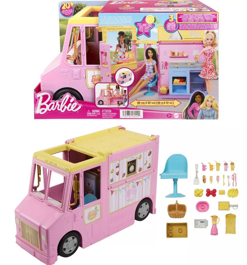 - S tako prikupno estetiko in številnimi kul dodatki je ta Barbie® tovornjaček za limonado odlično darilo za otroke, stare 3 leta in več!