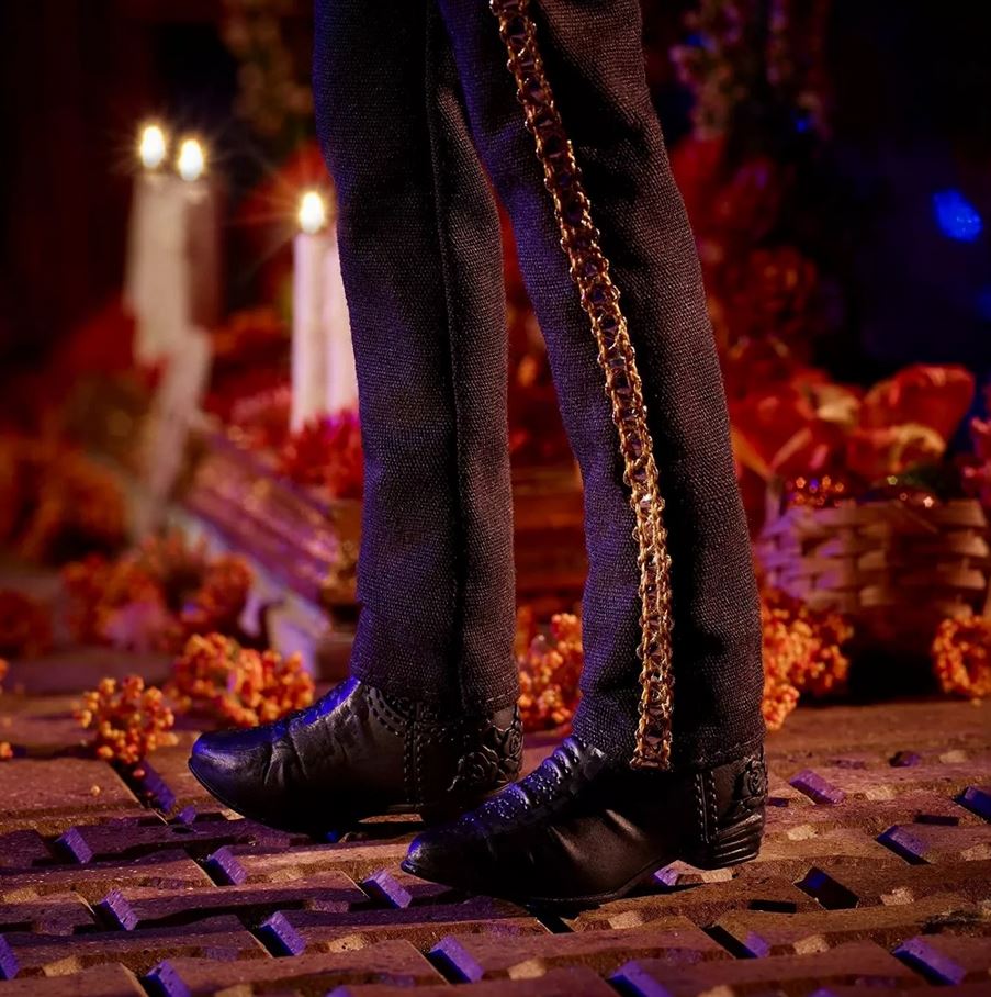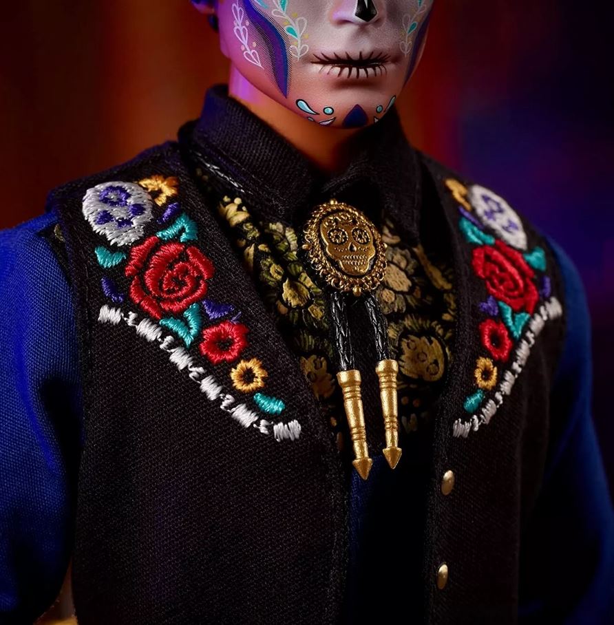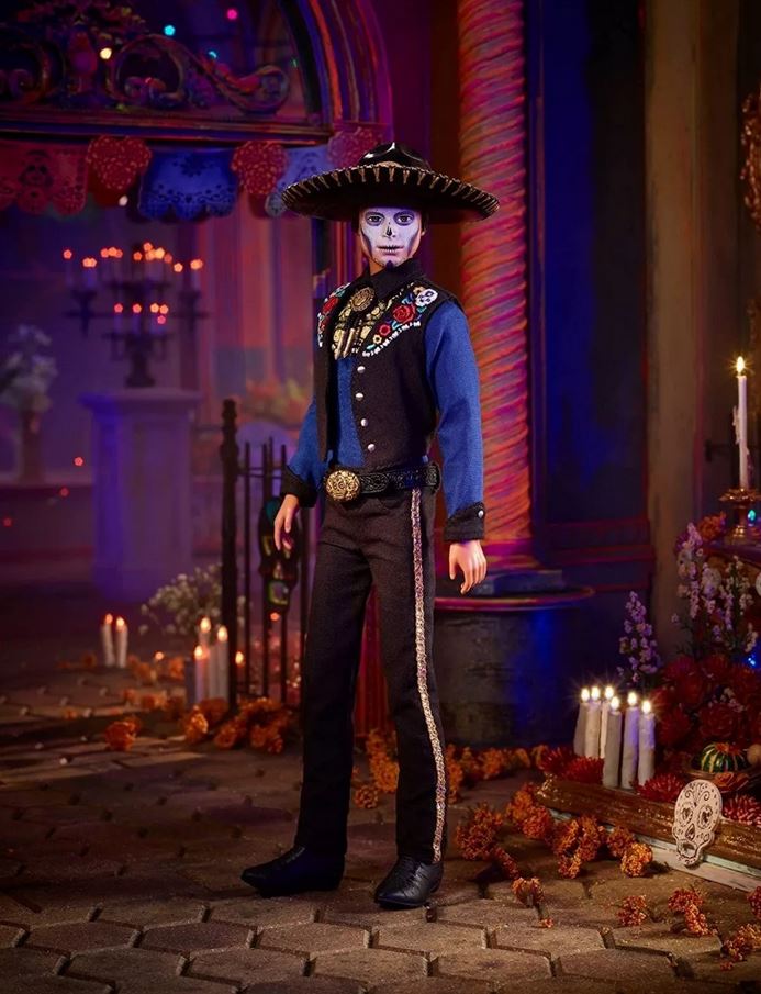 Lalka jest idealna dla kolekcjonerów i doskonała jako prezent. Charakteryzuje się wyjątkową dbałością o detale. Lalka Ken w stylu Charro nosi niebieską koszulę i kamizelkę, ozdobioną błyszczącymi czaszkami i kwiatowymi dodatkami. Jego strój doskonale uzupełnia krawat z motywem czaszki oraz sombrero ze złotą wstążką. Opakowanie nadaje się do wystawienia.