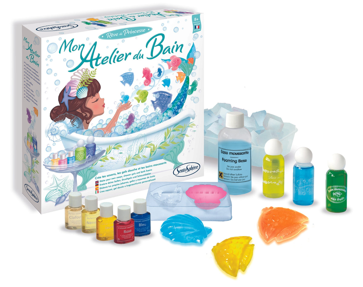 Ciesz się nauką robienia mydeł i pianek do kąpieli o głębokich morskich kolorach oraz kwiatowych i świeżych zapachach. Zabawne i pouczające podejście sprawia, że ten zestaw jest idealny do odkrywania zasad tworzenia produktów kosmetycznych w całkowitym bezpieczeństwie, dzięki testom dermatologicznym przeprowadzonym na składnikach.