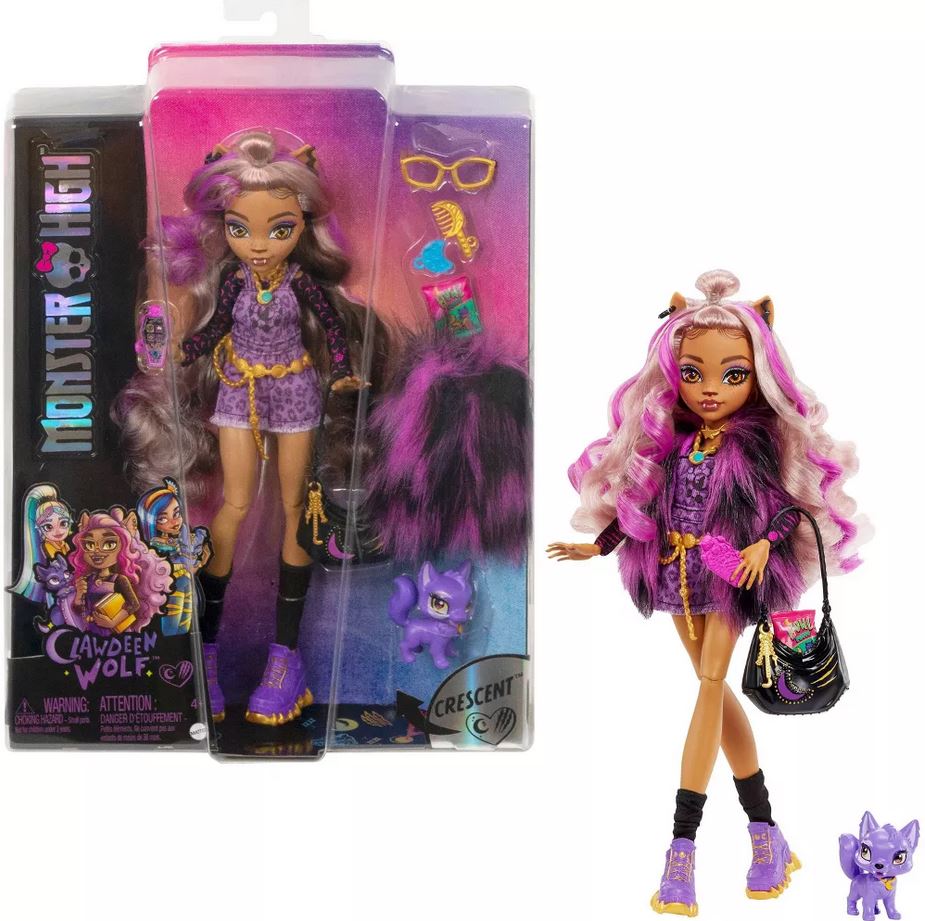 - Szkoła się zaczęła, a duchy Monster High™ pojawiają się w krzykliwym stylu!Lalka Clawdeen Wolf™ spaceruje po korytarzach Monster High™ w pazurowym stylu, który obejmuje sukienkę w zwierzęcy wzór oraz długą koszulkę z nadrukiem księżyca.