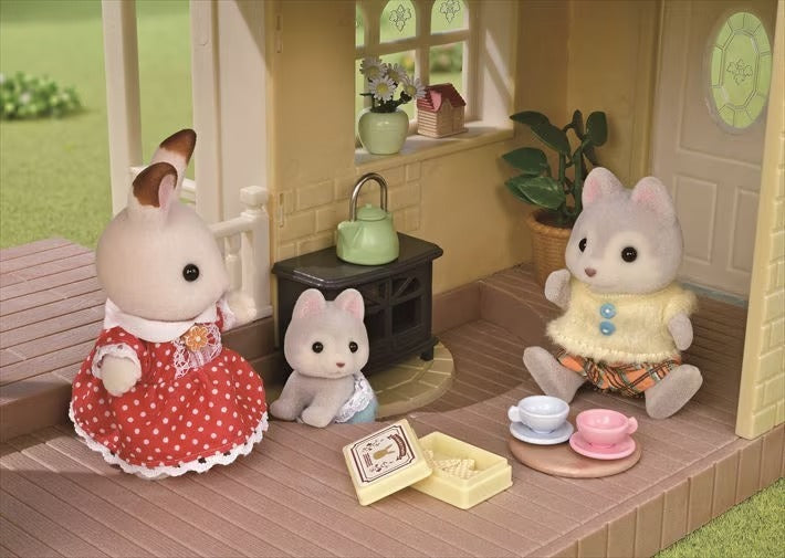 W środku znajduje się piec na drewno, a górne piętro służy jako urocza poddaszowa sypialnia dla Twoich gościnnych członków rodziny. Zestaw prezentowy zawiera również łóżko, zestaw z fotelem i stolikiem oraz figurkę króliczej siostrzyczki.